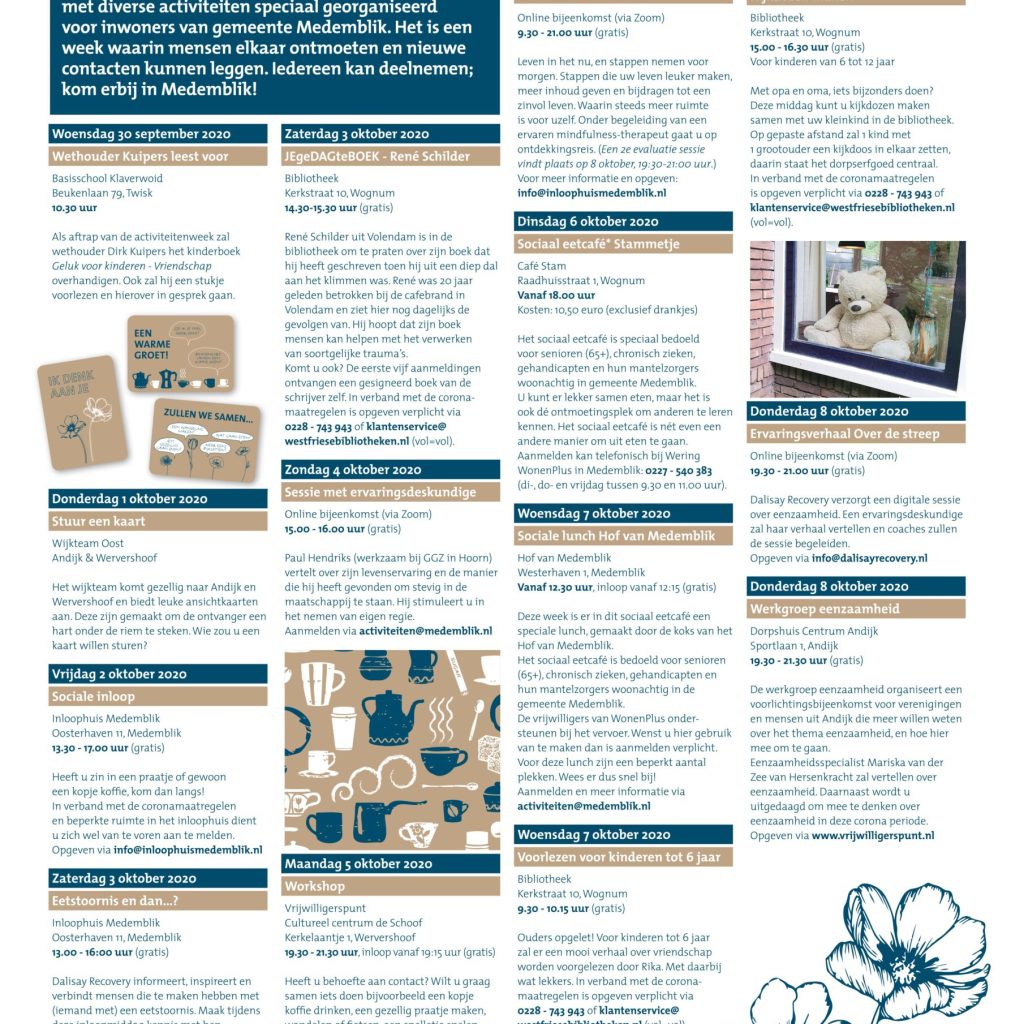 In de eerste twee weken van oktober, organiseert de gemeente Medemblik de week van de eenzaamheid onder de titel, ‘Kom erbij’ van 30 september t/m donderdag 8 oktober. En de […]